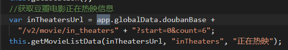 (2)比如,我們要獲取豆瓣電影的時候,我們需要調用豆瓣的api;我們先在app.js中的gloabData中定義doubanBase