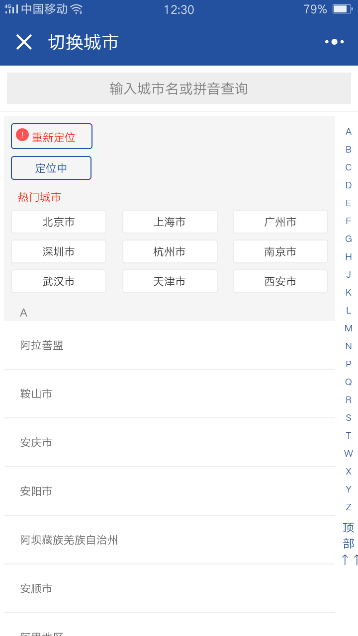 2)切換城市頁面,更新公共變量中城市信息為手動切換的城區,再switchTab回到首頁,觸發首頁重新加載。