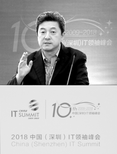 張首晟在2018中國(深圳)IT領(lǐng)袖峰會上演講。鄧銀生攝/光明圖片
