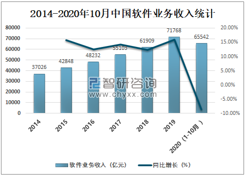 2014-2020年10月中國軟件業(yè)務收入統(tǒng)計