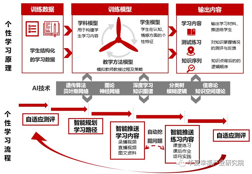 個性化學習主要用于自學場景,指系統通過知識圖譜和自適應推薦引擎,在大數據的基礎上構建學習模型并輸出學習建議,使每個使用者擁有自己獨特的學習路徑,支持按圖索驥式學習,提高學習效率。個性化學習能夠助力教育由“千篇一律”到“千人千面”的轉變,真正實現“因材施教”。